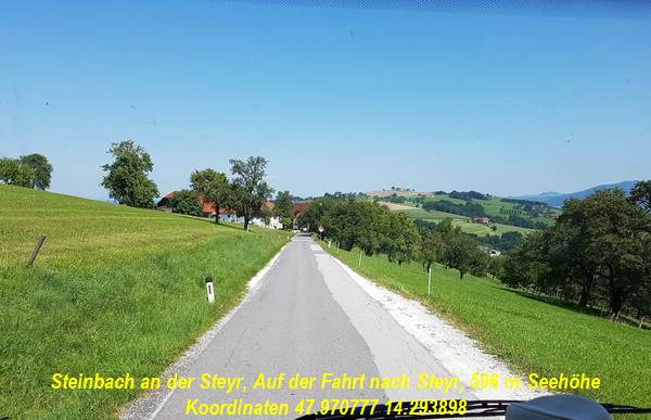 Abfahrt: Kilometerstand:19438 Koordinaten: N47.93798° E14.12743° Ankunft: Kilometerstand:19484 Koordinaten: N48.05938° E14.43278° Tageskilometer: 046 |