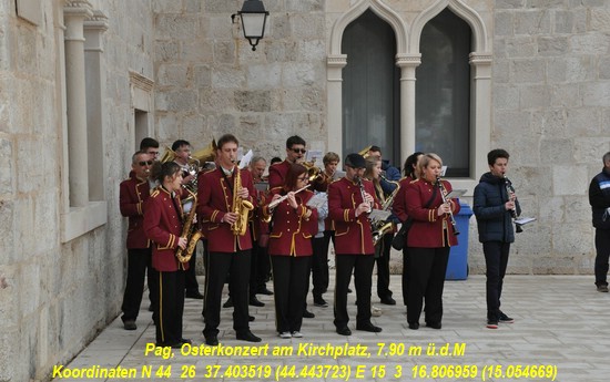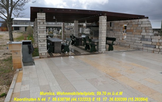 Wir entscheiden uns auf den Stellplatz in Murvica, einem Ort nahe Zadar zu fahren. Die Betreiberfamilie bietet einen sehr professionell gestalteten Wohnmobilstellplatz. Außer der üblichen Services bietet man noch einen überdachten Aufenthaltsraum, in der Saison einen Pool und ein Taxiservice in die Stadt Zadar und zurück für 10 Euro. Die Stellplatzgebühr beträgt 150,- Kuna. Nach unserer telefonischen Anmeldung kommen die Besitzer. Wir erhalten wir nicht nur einen Stadtplan von Zadar für unsere morgige Besichtigung, auch überraschen sie uns mit einem Osterkuchen.