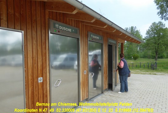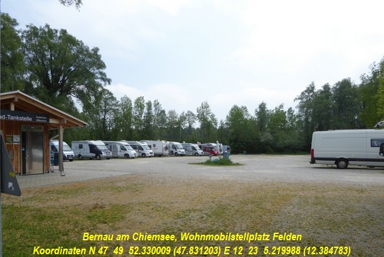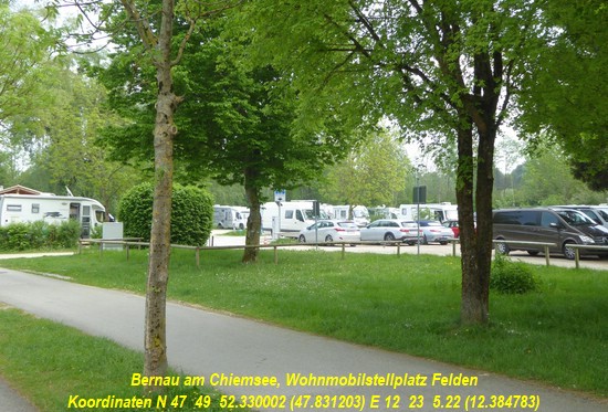 Am Wohnmobilstellplatz Felden, direkt am Chiemsee gelegen, endet unsere heutige Fahrt. |