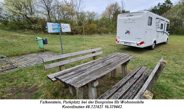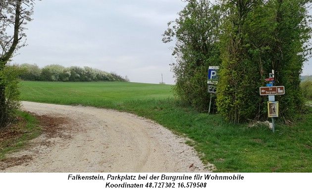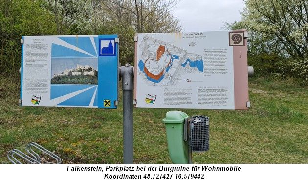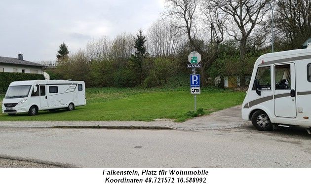 | In Falkenstein sehen wir uns die offiziellen Parkplätze für Wohnmobile im Ort und bei der Burgruine an. |