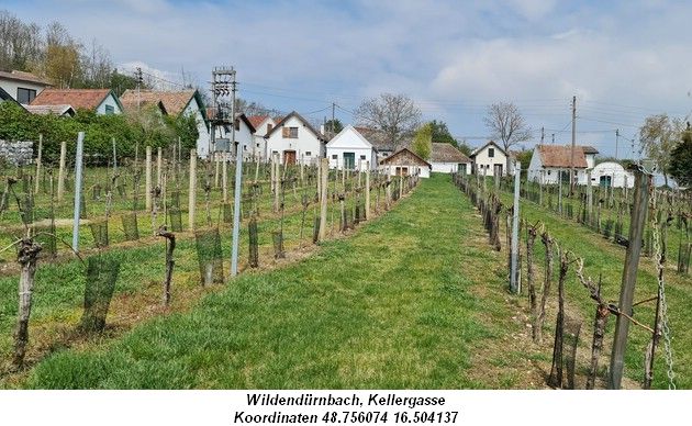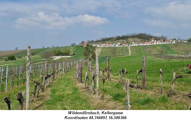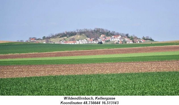 | Der Galgenberg in der Gemeinde Wildendürnbach mit seinen typischen Kellergassen ist schon vom weitem sichtbar. |