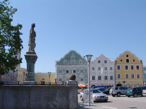 Auf unserer Fahrt kommen wir durch Obernberg am Inn mit Rokokofassaden an den Giebelhäusern.