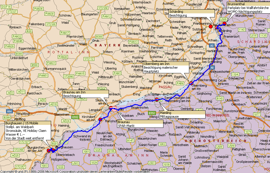 Morgens: Km-Stand: 52255 Koordinaten: 48,46925 Nord - 13,46003 Ost