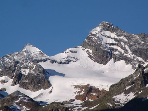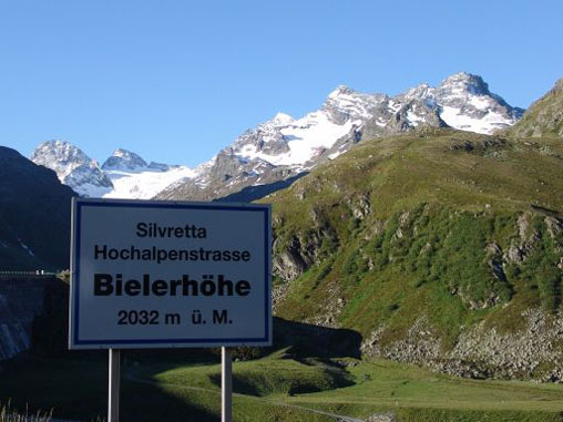 Wie erhofft haben wir am Morgen auf der Bielerhöhe beim Silvretta See strahlendes Wetter und die Gletscher liegen zum Greifen nahe.