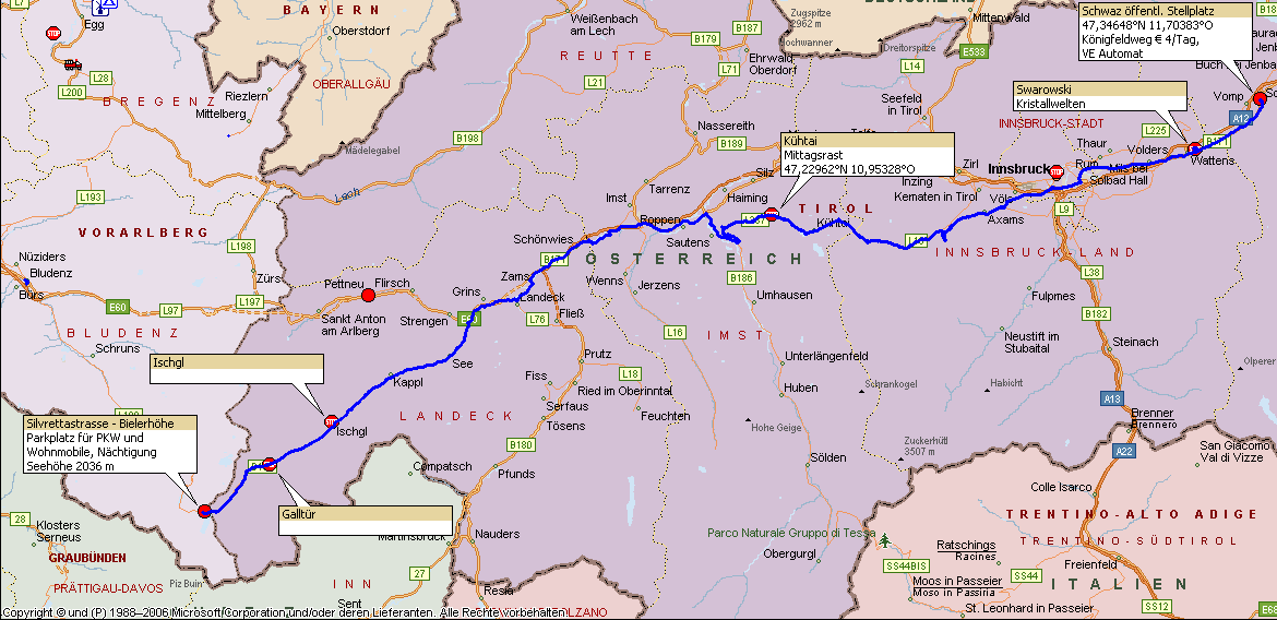 Morgens: Km-Stand: 53192 Koordinaten: 46,91851 Nord - 10,09029 Ost