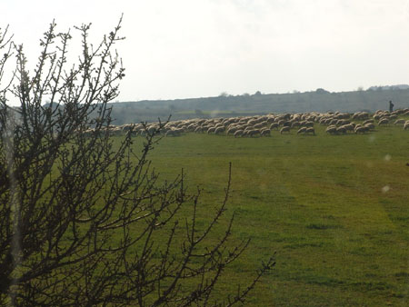 Nahe Ruvo di Puglia sehen wir diesen Marmorsteinbruch und eine apulische Schafherde samt Schäfer