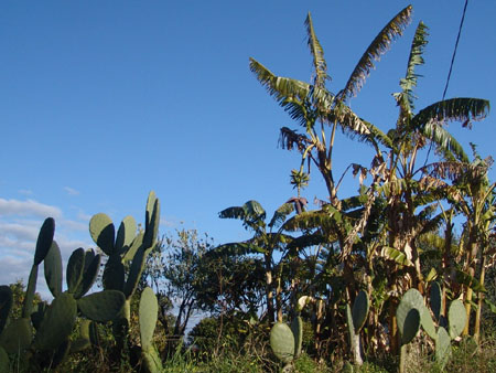 Üppige Vegetation, Weihnachtssterne, Kakteen und Banananen am Capo Vaticano