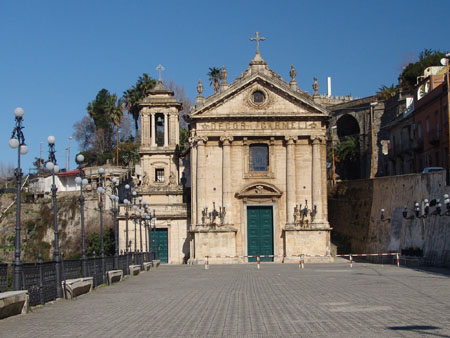 Kirche in Bagnara Calabra Parkplatz unter Gummibaum