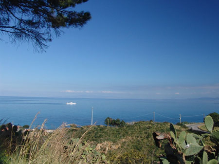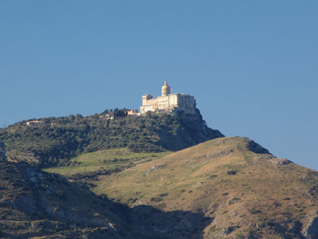 Blick zurück nach Kalabrien Santuario della Madonna Nera in Tindary