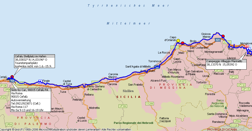 Abends: Km-Stand: 48384 Koordinaten: 38,03832 Nord - 14,03196 Ost