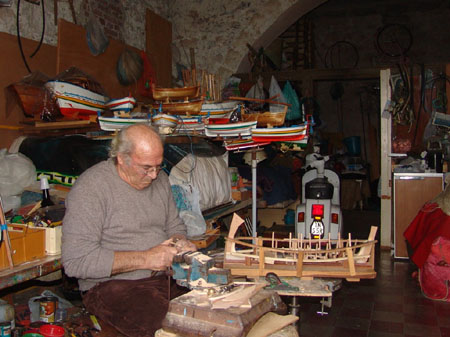 Ein Modellschiffsbauer bei seiner Arbeit Domplatz von Cefalu